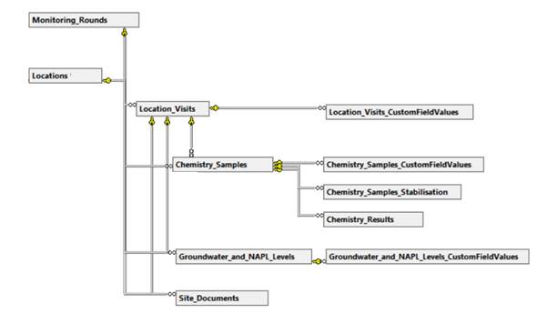 The ESdat Field Portal & the ESdat Field App collects Field Chemistry, Groundwater and other data. Chemistry Results and Groundwater tables and relationships are already described in the Schema documents that deal with those Data Types. This section describes their relationships and usage in relation to field data collection specifically.