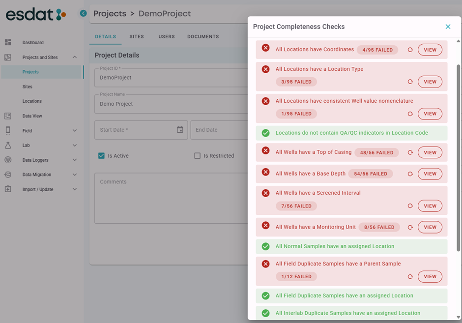The Project Completeness checker will look for common data gaps or incomplete data and can be used for: